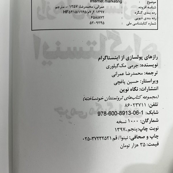 کتاب دست دوم رازهای پولسازی از اینستاگرام اثر جرمی مک گیلوری نشر نگاه نوین